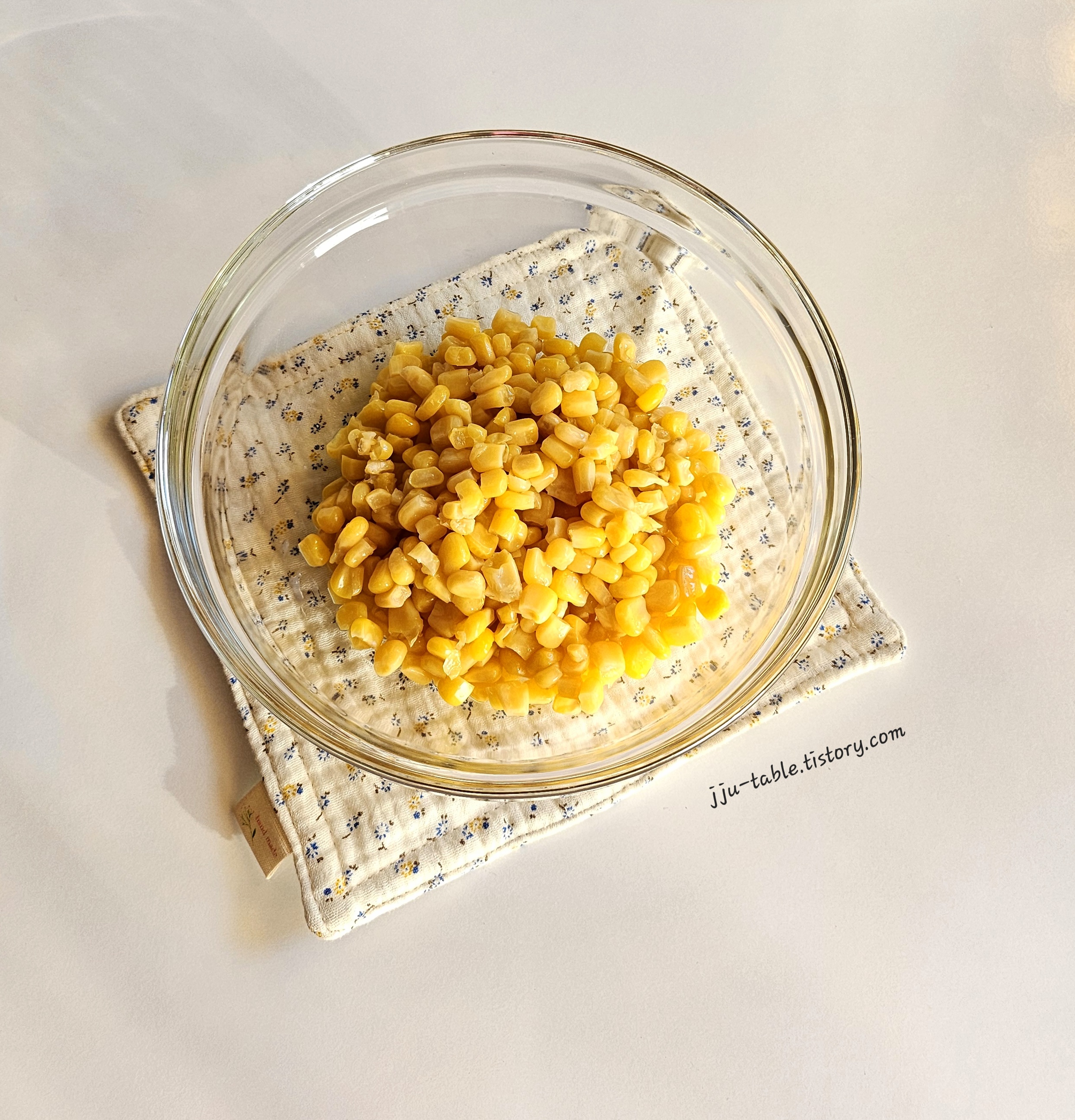 - 캔 옥수수를 준비해 주세요. 저는 198g 옥수수 캔으로 콘옥수수 전을 만들었어요.