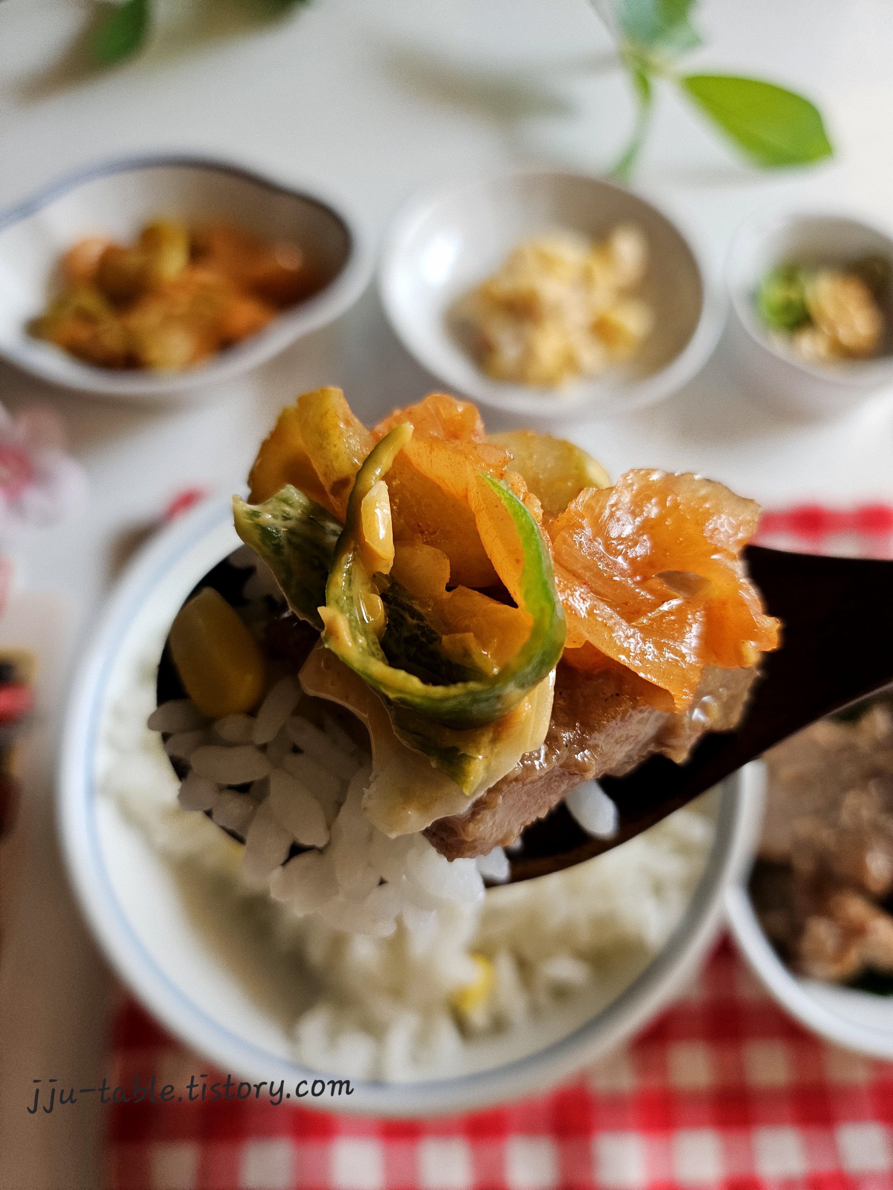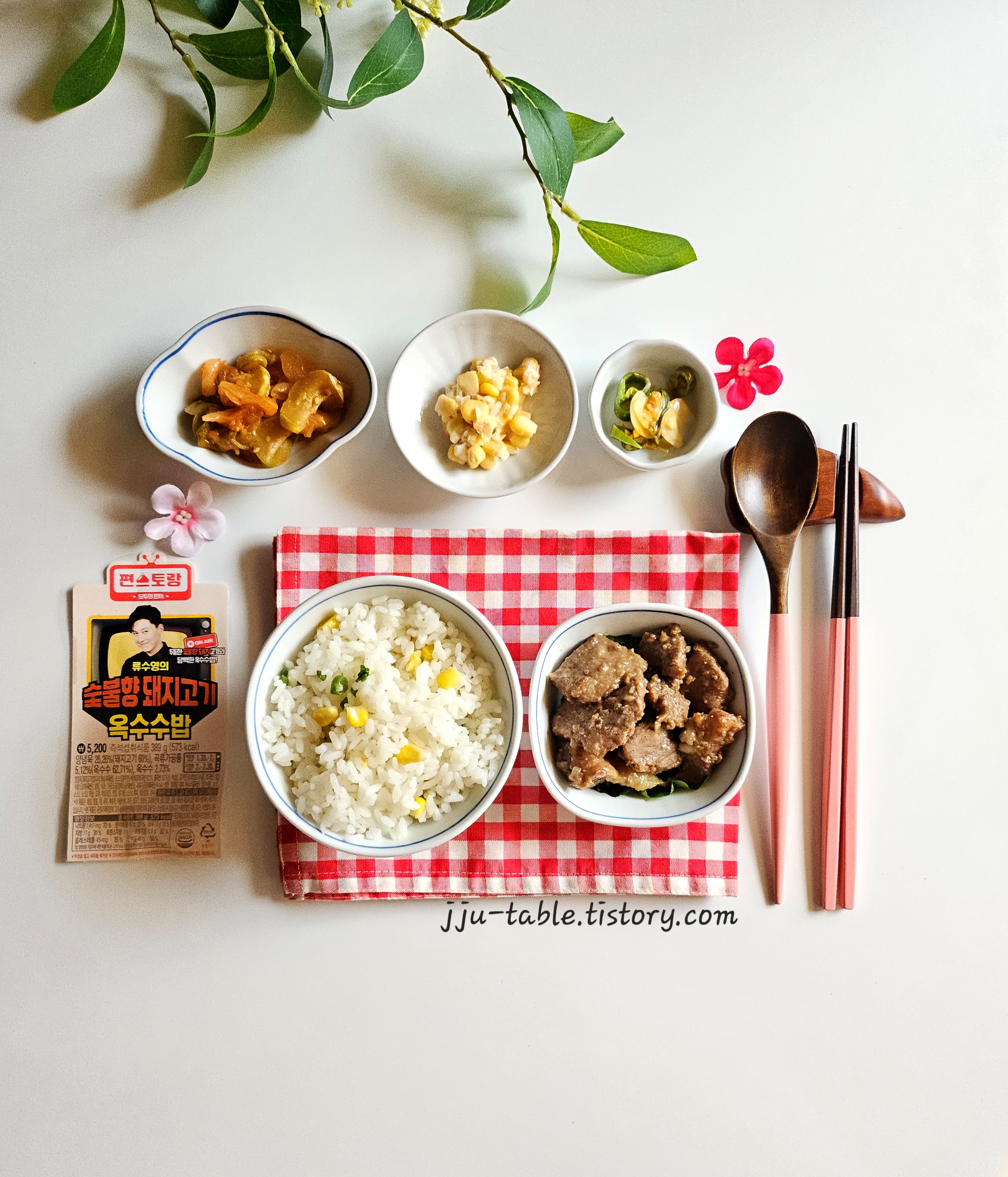 류수영 숯불향 돼지고기 옥수수 밥 맛