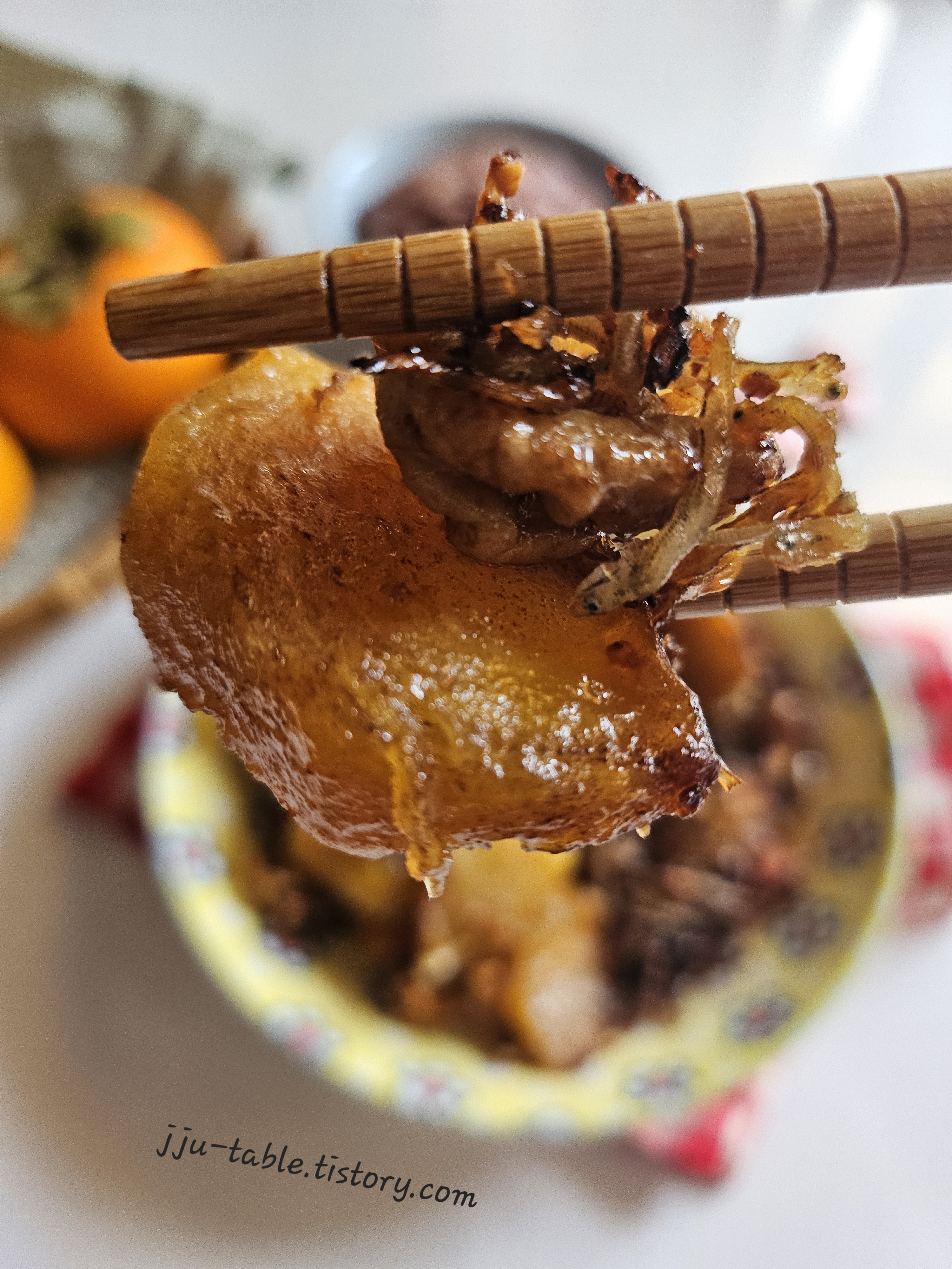 - 단감, 멸치, 올리고당 또는 물엿, 다진 마늘, 견과류